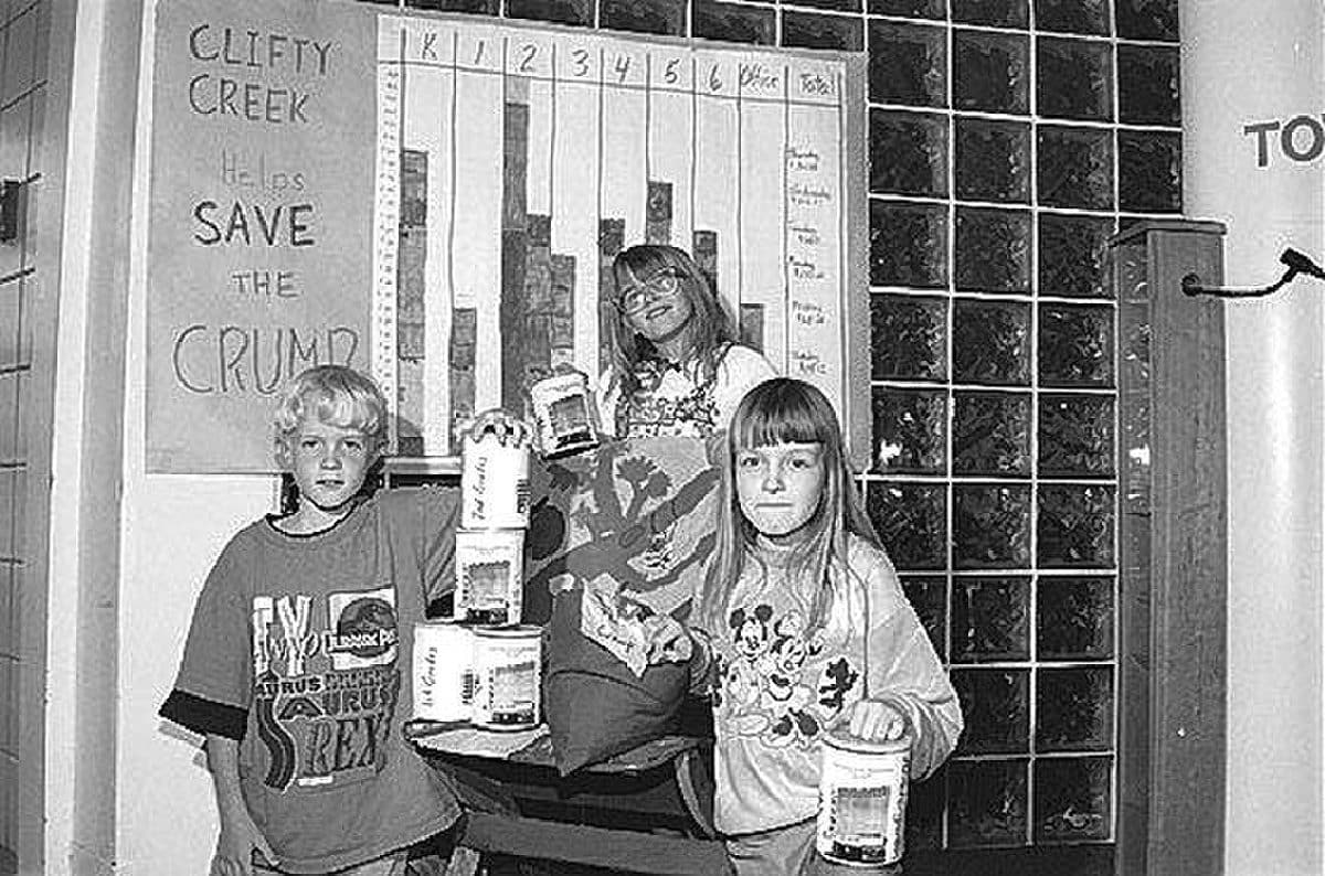 Clifty Creek second-graders Chase Leckron, Ashley Wyatt and Shawnaa Wyatt, from left, and their classmates started a Save the Crump campaign that spread throughout the school during the last weeks of the school year, raising nearly $350. From The Republic archives