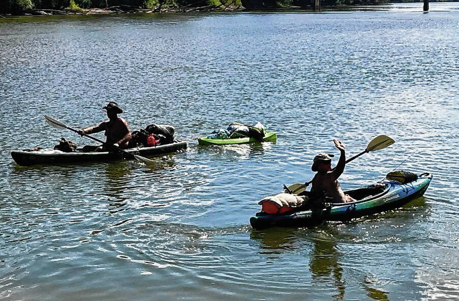 Greg Foley and Toby Stigdon push off on one of the legs of their 200-mile Kayaking for Cancer paddle between Columbus and Petersburg from Sept. 1 to 8.