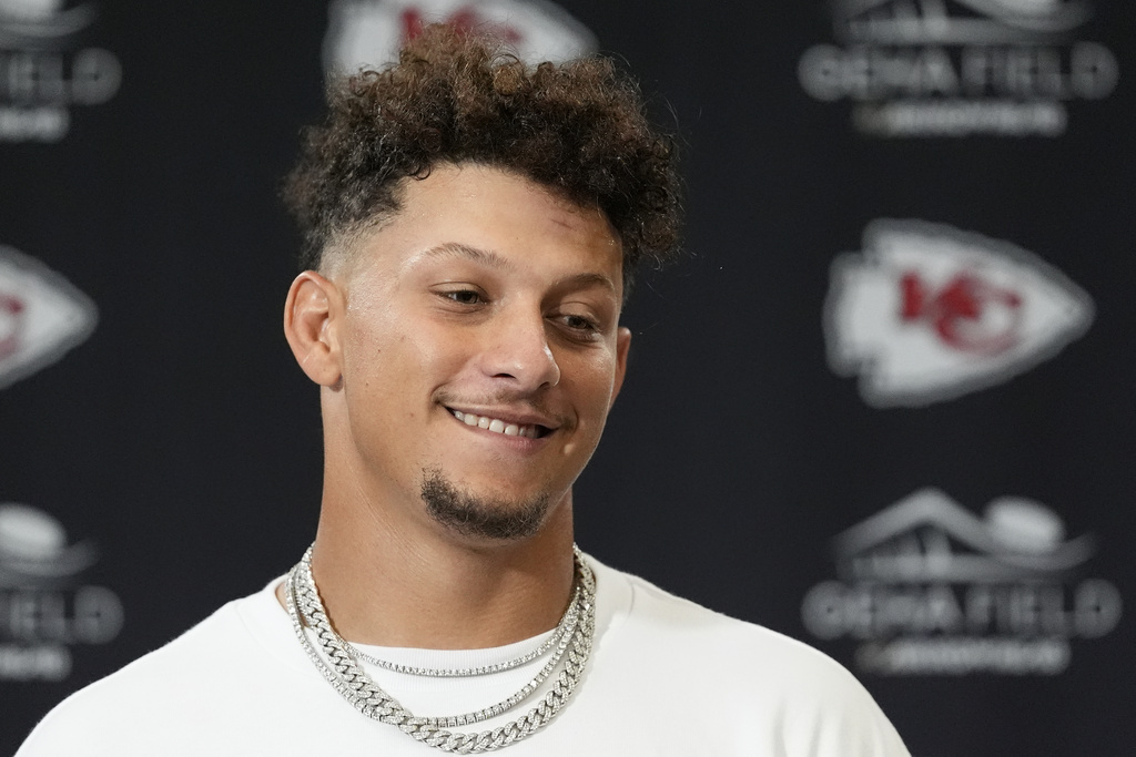 Kansas City Chiefs quarterback Patrick Mahomes smiles during a news conference following an NFL football game against the Baltimore Ravens Thursday, Sept. 5, 2024, in Kansas City, Mo. The Chiefs won 27-20. (AP Photo/Charlie Riedel)
