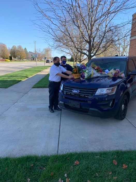 Columbus firefighters add a tribute to Diesel on Monday at the Bartholomew County Jail.