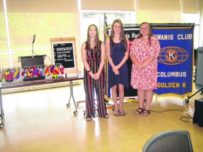 From left, Hannah Blair of Columbus North High School, Veronica McKinney of Hauser High School and Abigail Martin of Columbus East High School attend the June 10 Golden K Kiwanis Club meeting to meet the members and receive their $1,000 scholarships. Members learned about the students' lives, plans and goals. All are planning to attend Indiana University.