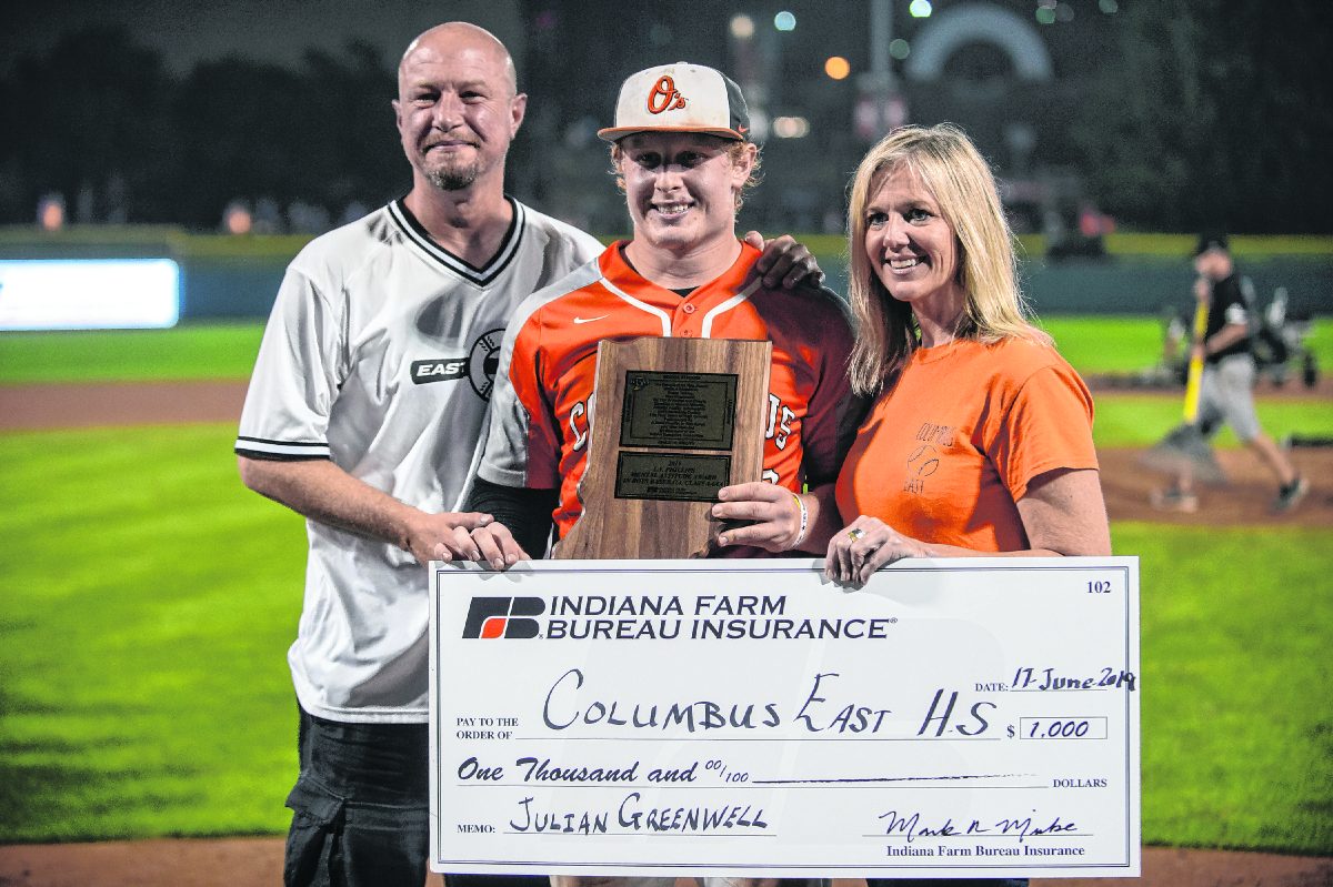 A few minutes after the conclusion of the game, which started late Monday and stretched to early Tuesday, the IHSAA Executive Committee selected Julian Greenwell as this year’s recipient for the L.V. Phillips Mental Attitude Award for Class 4A. Indiana Farm Bureau Insurance presented Greenwell a check of $1,000 to the general scholarship fund at East in his name.