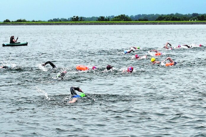 Local triathletes Max Henry and his son Malachi started Tri-812 last year. The club meets at Max Henry’s house on Sunday afternoons for group swims on Grandview Lake.