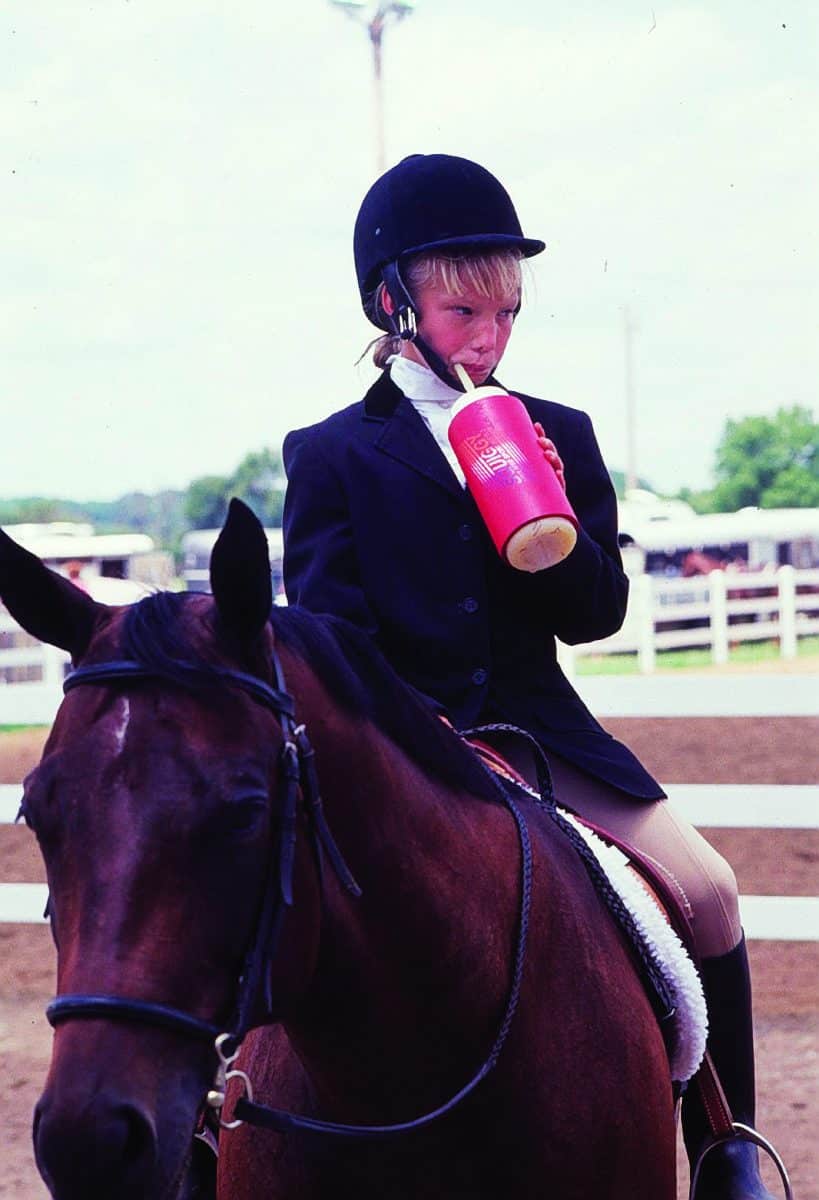 Brittany Barker, 10, relaxed after putting her horse, Chevy, through its paces during the Circle C 4-H Horse and Pony Club Open Horse Show at the Bartholomew County Fair in 1994.
