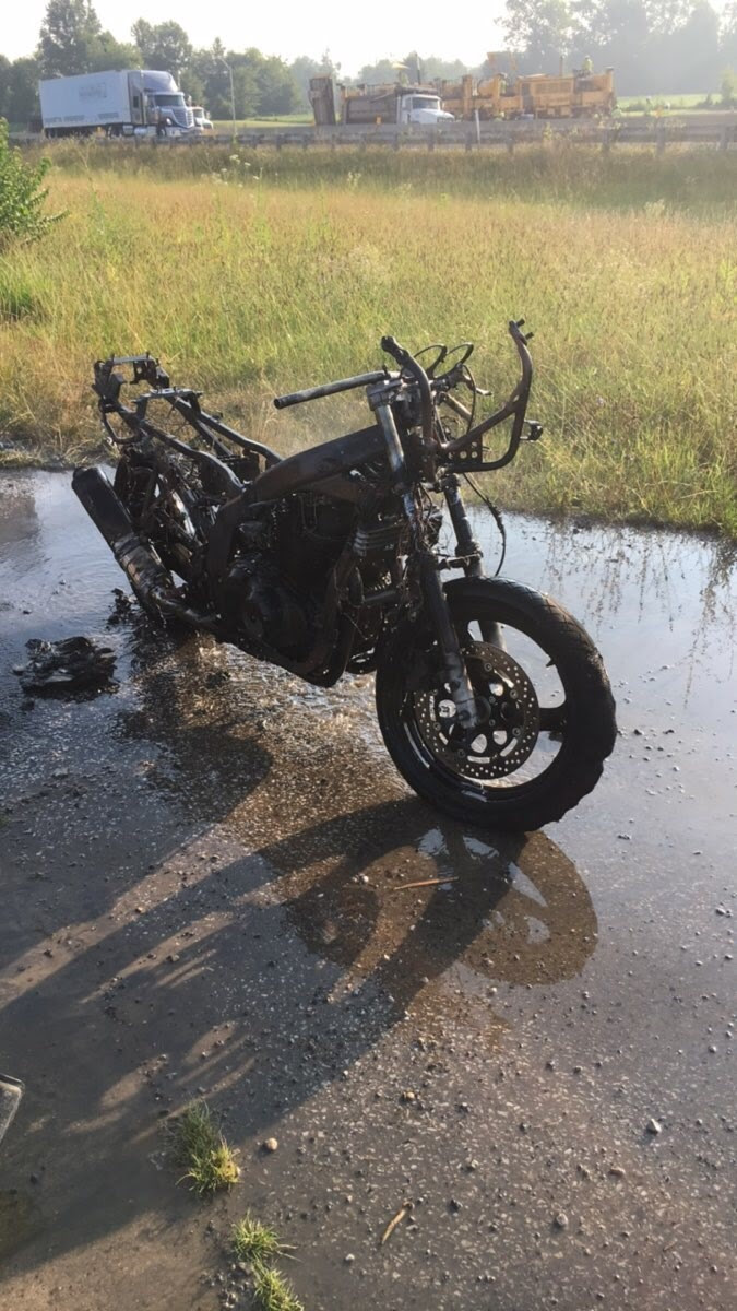 Jones pulled the motorcycle into the I-65 southbound scales and began to work on it.  t some point, the motorcycle caught fire. Troopers quickly arrived on scene and did not locate Jones. Workers in the area told the troopers that Jones left the area and began walking westbound across a field.