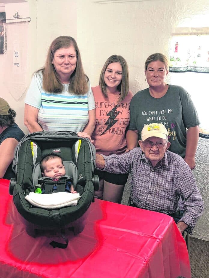 Five generations of the Fields family gathered recently. They are, from left: Connie England, Lindsey Lewis, Aleisha Hennsley, Mason Lewis and Buel Fields. Mason, the son of Lindsey and Scott Lewis, is Buel’s first great-great-grandson. Buel and Velma Fields had five children (four boys and one girl), and have many grandchildren and great grandchildren. Velma died 2 years ago.