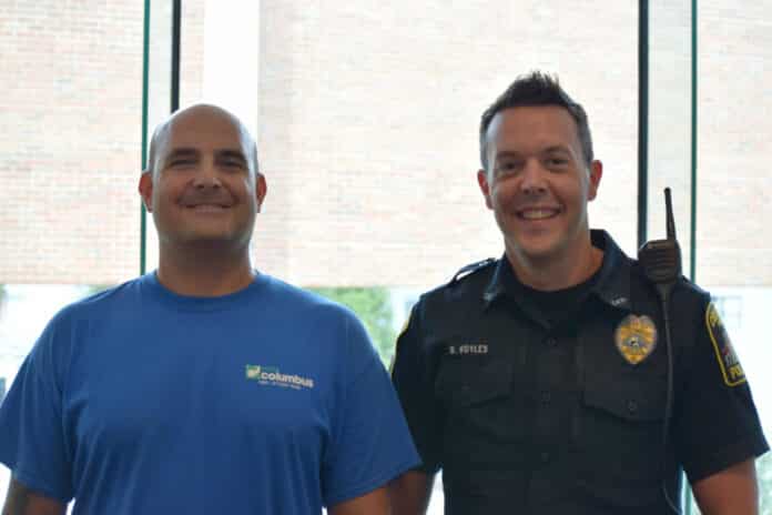 On July 10, CPD Officer Brian Voyles, a six-year veteran of the department, was on patrol in the area of State and Pence streets when he was flagged down by Rudy Zeigler, a Columbus Department of Public Works employee.