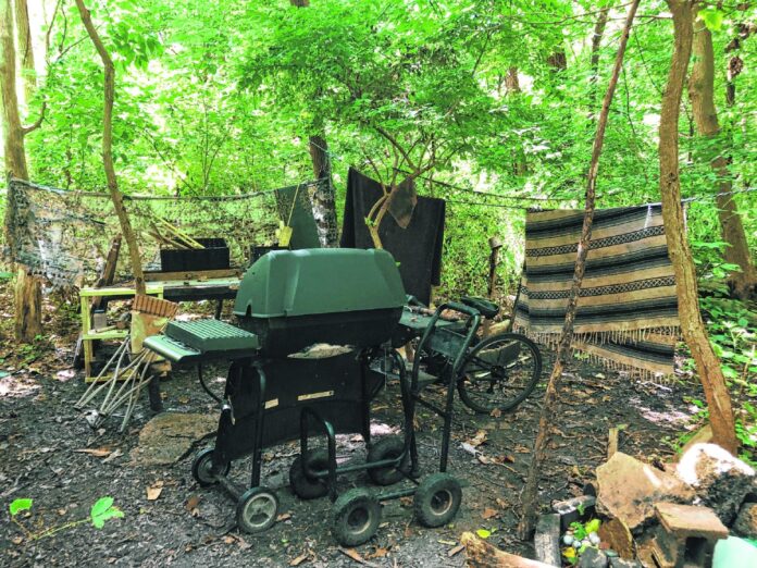 While cleaning up two homeless campsites in Noblitt Park earlier this month, code enforcement officer Fred Barnett said he was approached by an individual who notified him about a large homeless camp site “over across the river.”