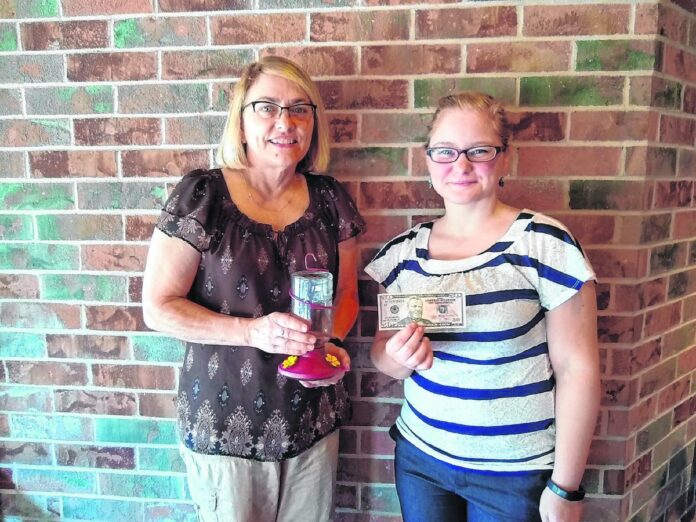 Judy Gilbert, left, and Kelby Bennett pose with the prizes they earned as winners of the Bartholomew County Extension Homemakers' scavenger hunt, conducted in the Family Arts Building during the Bartholomew County 4-H Fair in July. The scavenger hunt featured 40 participants. Bennett received a $50 prize. Holly Chastain received a decorative hanger as a prize, and Gilbert received a bird feeder. Submitted photo