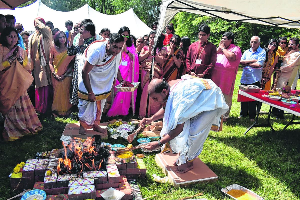 Hindus participate in a ceremony at the groundbreaking of the Hindu Society of Southern Indiana’s planned temple. Submitted photo