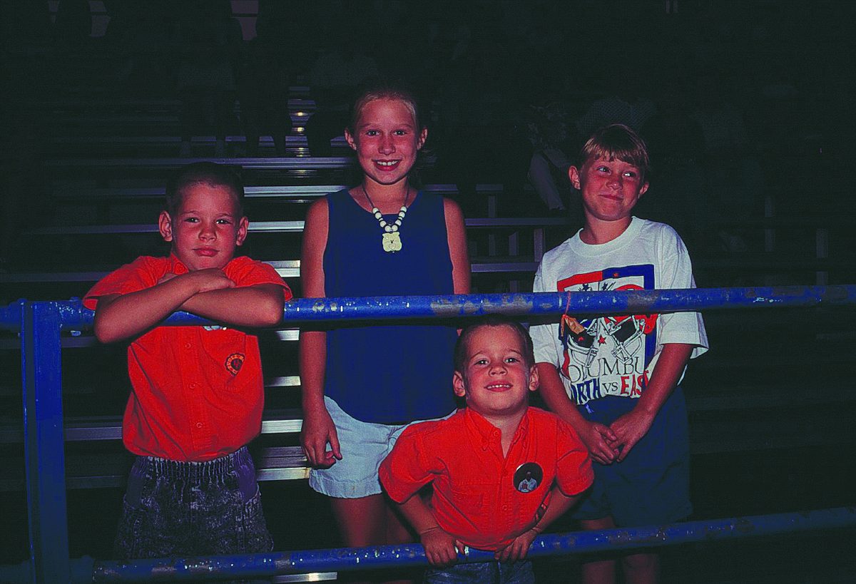From left, Antonio Hansen, Lesley George, Blake Hansen and Sarah King enjoyed the football jamboree at Columbus North High School that marked the opening of the high school football season in 1994. From The Republic archives
