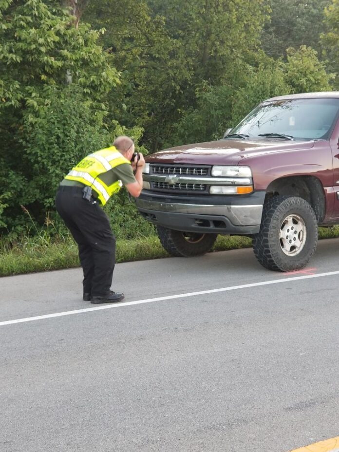 BCSO Deputy Mark Helms continues the investigation into a pedestrian hit by a pickup truck. Photo provided