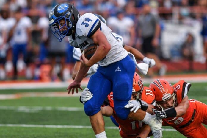 The Olympians (1-1) made a serious comeback in the second half and cut it to 35-31 with under two minutes left, but Bull Dogs running back Blake Huffman slammed the door shut with 1:35 left to score an insurance touchdown that gave them breathing room the rest of the game.