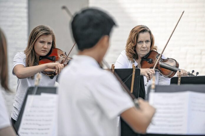 At right, Vanessa Edwards, the Columbus Indiana Philharmonic education director, and Molly Dye, left, perform with the Columbus Philharmonic Youth Ensemble. Mike Wolanin | The Republic