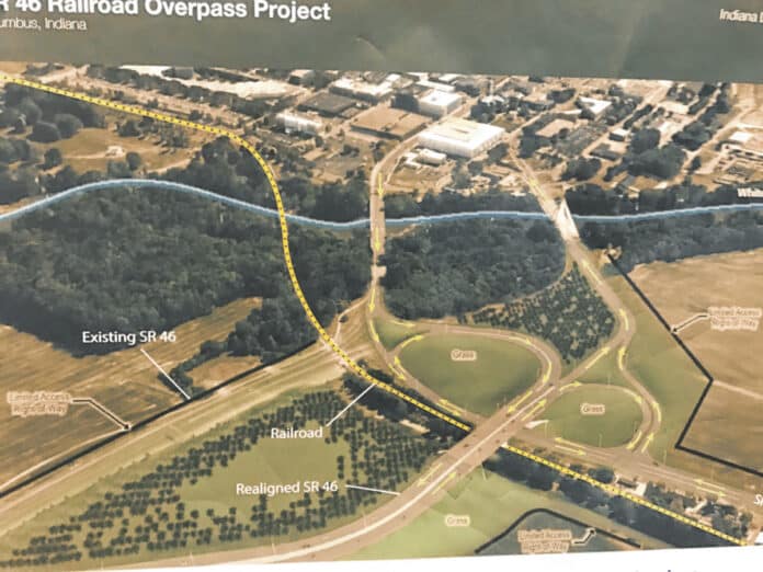 The Indiana Department of Transportation and the city of Columbus provided this artist's rendition of traffic flow through a modified cloverleaf design, featuring an overpass over the State Road 46/State Road 11 railroad crossing. Submitted photo