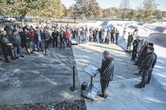 Columbus Mayor Jim Lienhoop, Columbus Parks Director Mark Jones and several members of the skate park committee were among the speakers at the event, which attracted about 100 people to celebrate the official opening.