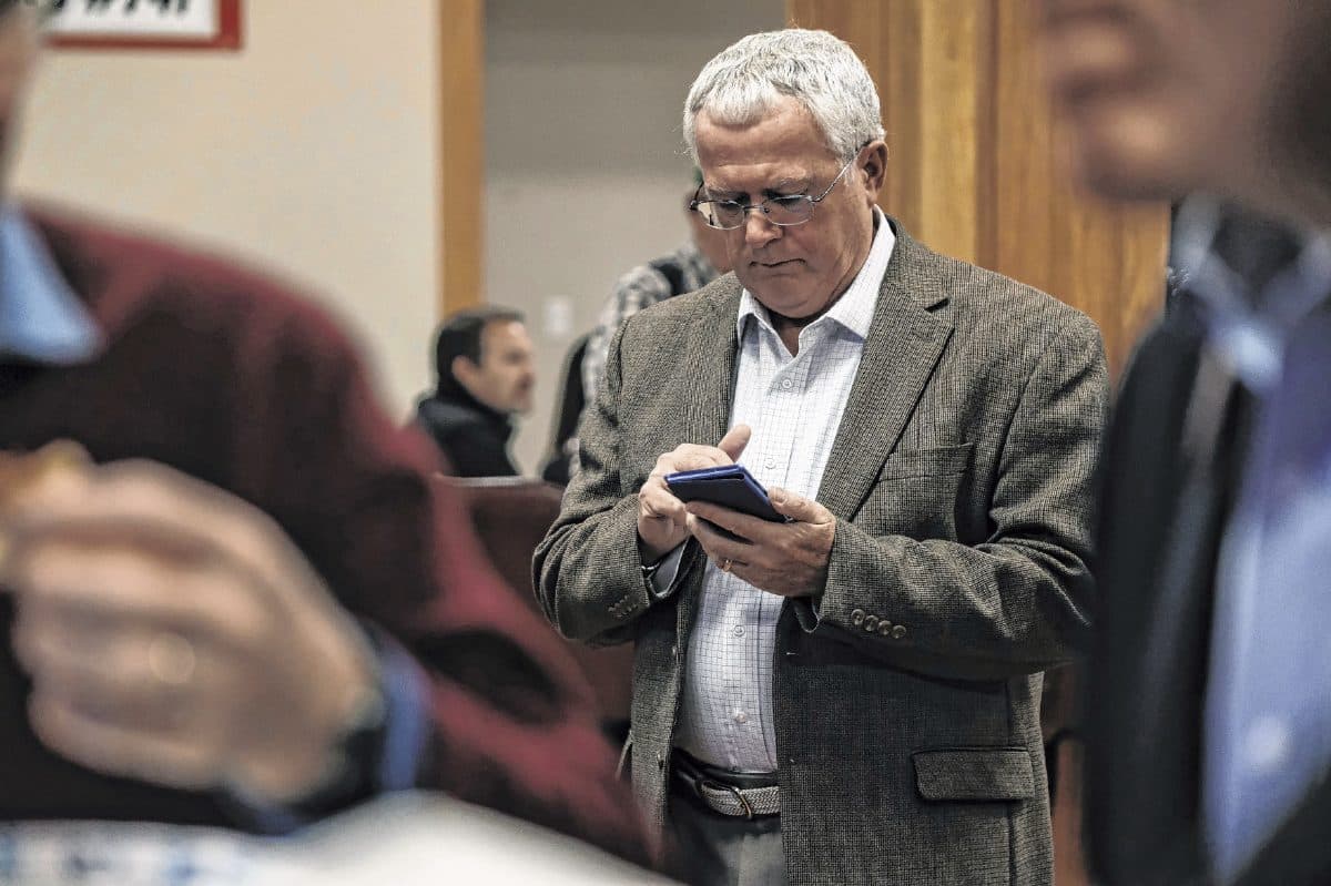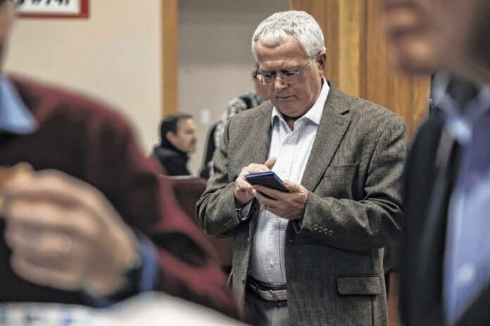 Frank Miller, Republican incumbent for Columbus City Council District 4, watches vote totals during the Bartholomew County Republican Party election results party at the Fraternal Order of Eagles in Columbus, Ind., Tuesday, Nov. 5, 2019. Mike Wolanin | The Republic