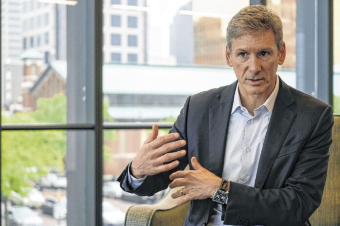 Cummins Chairman and CEO Tom Linebarger answers questions during an interview at Cummins Distribution Headquarters in Indianapolis, Monday, May 13, 2019. Mike Wolanin | The Republic