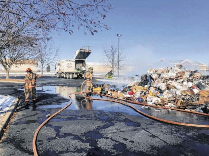With no additional vehicles or buildings in the proximity of the burning materials, firefighter went to work at extinguishing the fire, Wilson said. Due to the amount of debris, and that the fire was burning inside the pile of material, firefighters used a nearby fire hydrant for water, Wilson said.