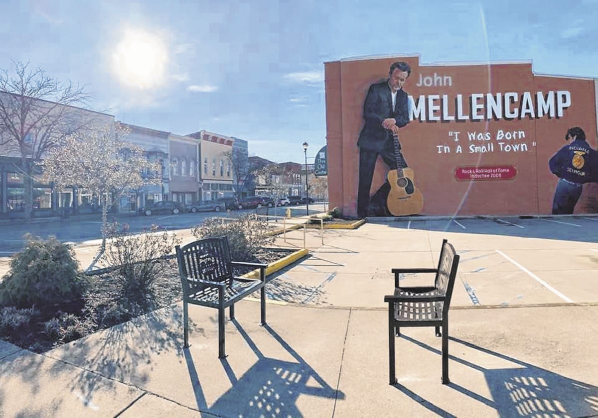 In November, she completed the Mellencamp mural, which features a 35-foot image of him leaning on a guitar, a smaller image of him wearing a Seymour FFA jacket, “I was born in a small town” lyrics from his famous “Small Town” song and a sign noting his Rock and Roll Hall of Fame induction.