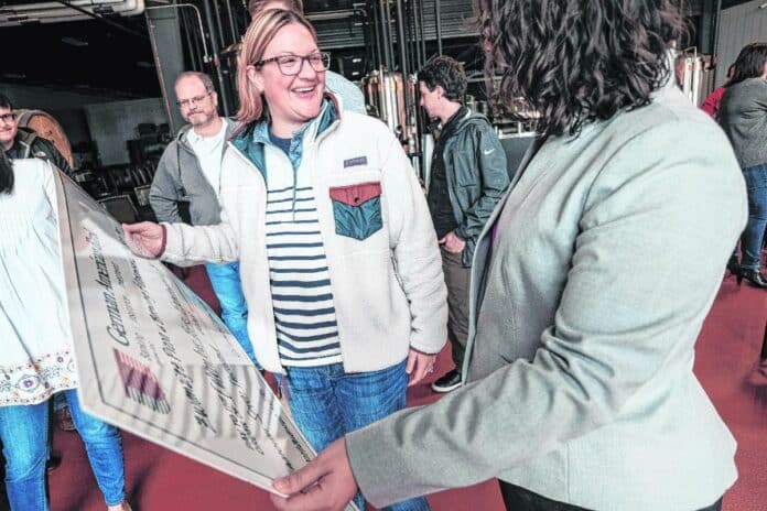 Recipients posed for pictures with Kurt and Lisa Zwanzig with large checks, and were reassured that ZwanzigZ would provide real checks to take to the bank. The check presentation was held at the company’s new brewing facility downtown.