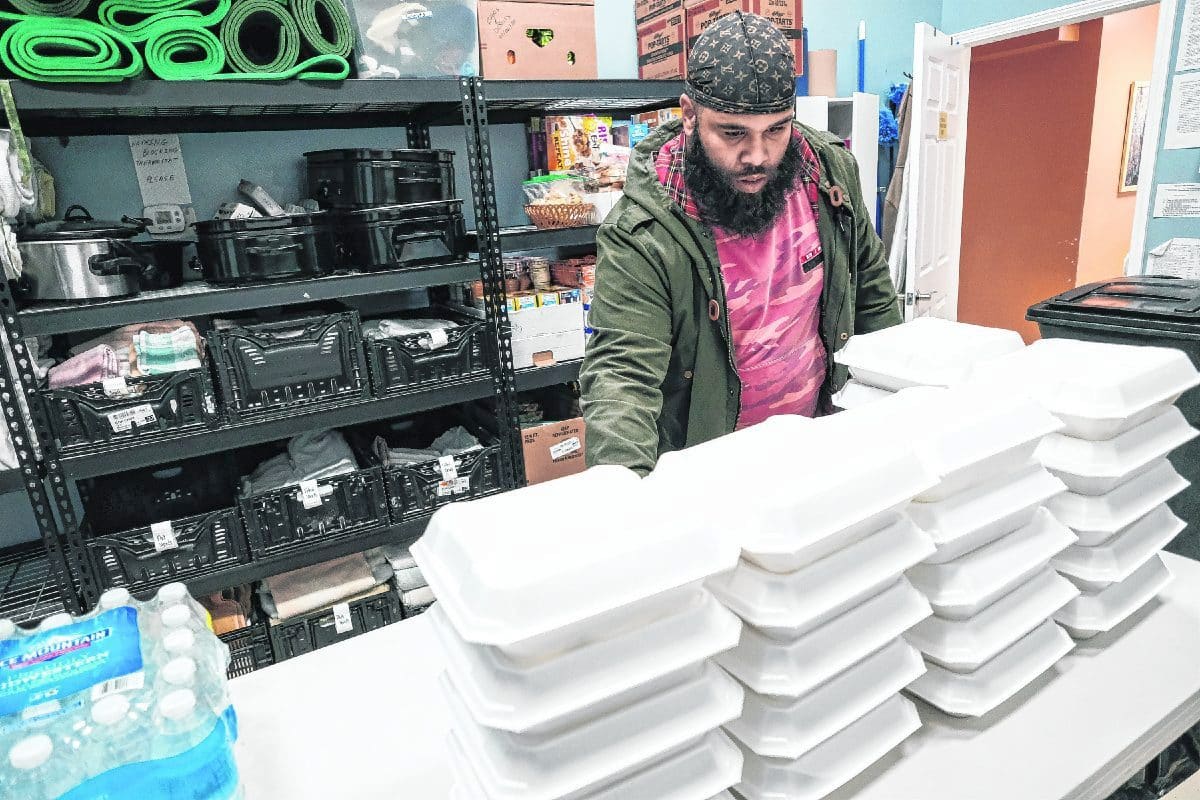 Keenan Noel gets ready to deliver chicken taco meals to Brighter Day Housing in Columbus, Ind., Tuesday, January, 7, 2020. Noel and a group of volunteers prepared about 70 meals at coach Ray Gipson's barbershop Coach's Cutz to distribute to different shelters in Columbus. Mike Wolanin | The Republic