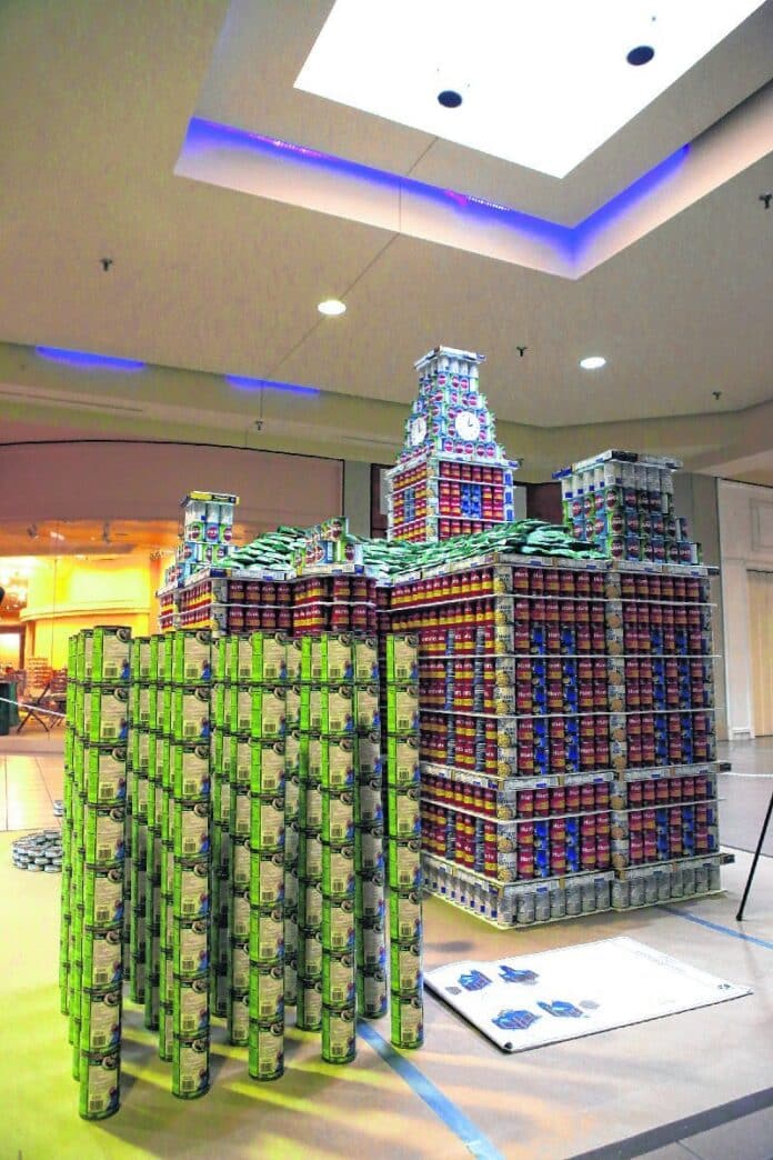 In this event, volunteer builders sometimes create bridges with canned carrots and national landmarks with canned beans.
