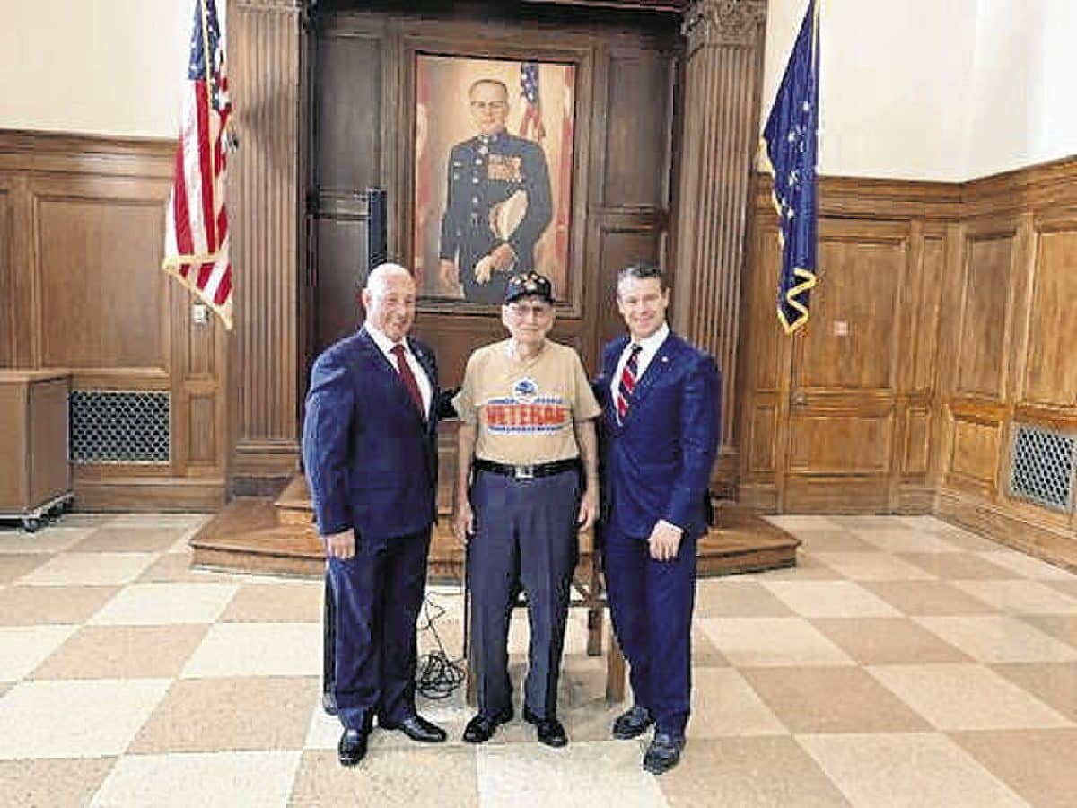 They were joined by World War II veteran Wayne Saucerman, who served in the Battle of Iwo Jima.