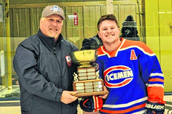 The Columbus Icemen’s Tom Sullivan was one of four senior hockey players from around the state presented with the J Howard Guitard Memorial Award at last weekend’s State Invitational Tournament.