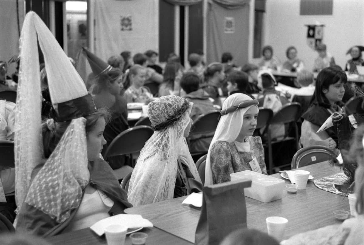 Parkside Elementary School students and faculty members dressed up as jesters, magicians, monks and crusaders and learned about jousting and other Middle Ages-themed activities during a Medieval Fair in 1995. From The Republic archives