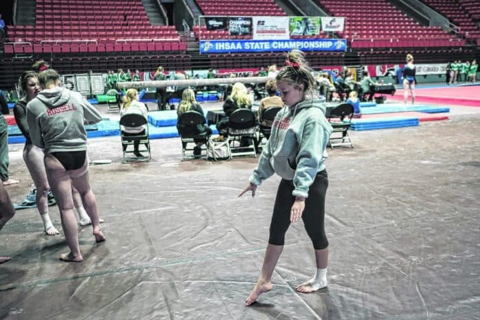 The Indiana High School Gymnastics meet was held Saturday without fans at Ball State’s Worthen Arena in Muncie.