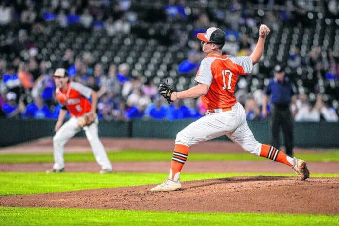 Columbus East’s Cole Gilley throws a pitch during the Class 4A state final baseball game between Columbus East and Hamilton Southeastern at Victory Field in Indianapolis, Monday, June 18, 2019. East lost to Hamilton Southeastern 3-2 and finished as the state runner-up. Mike Wolanin | The Republic Mike Wolanin | The Republic