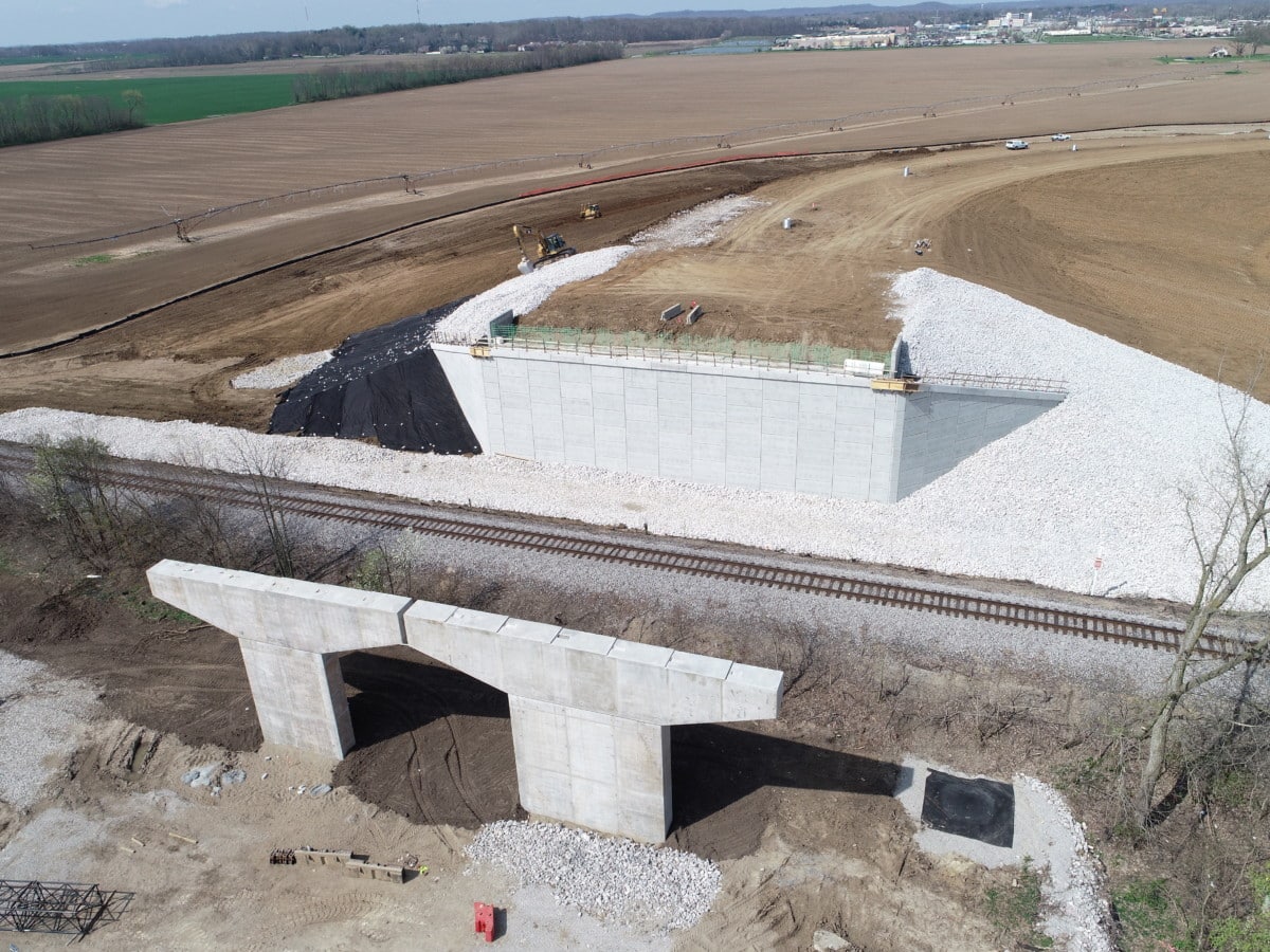 Construction crews from Milestone Contractors have been working overtime on the railroad overpass and interchange project on Columbus’ west side that will eventually allow motorists to avoid being stopped by railroad traffic at the intersection of State Road 46 and State Road 11.