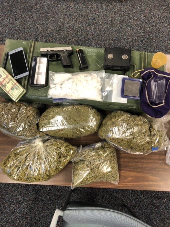During a search of the vehicle, officers located approximately four pounds of marijuana and a handgun, Harris said. Both the driver of the vehicle, Shawn I. Vanarsdale, 45, of Columbus and his passenger Nicole A. Spatola, 42, of Columbus were detained.
