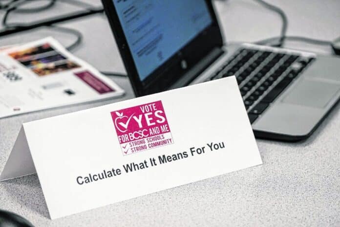 Under the referendum, BCSC property taxes would be raised by $0.156 per $100 of assessed value to roughly $1.01 starting in 2021. BCSC officials initially had sought a $0.195 per $100 of assessed valuation increase, but lowered the request before the public information sessions began.