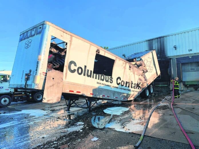 A semi trailer at Columbus Container was destroyed by fire at the company loading dock late Wednesday night. Submitted photo