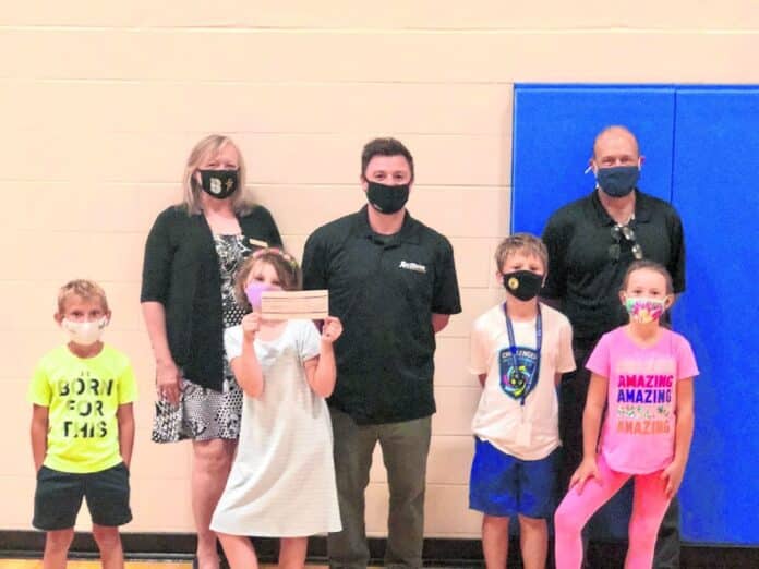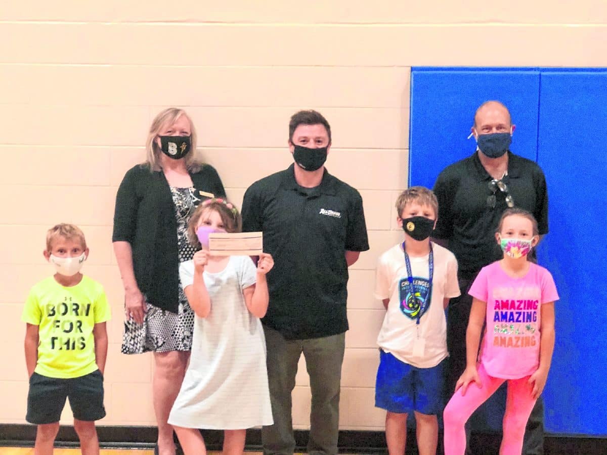 Back row, from left, Foundation for Youth Chief Development Officer Karina Willats, All-Phase Branch Manager, Johnny Feltner, and Foundation for Youth Executive Director Chuck Kime. Front row, from left, Brayden Falor, Quinnlee Stiffler, Drew Dobbs and Callie Nielsen accept the check.
