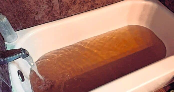 Brown water in a bathtub at Mariah Viewegh's Edinburgh house last week. Submitted photo.