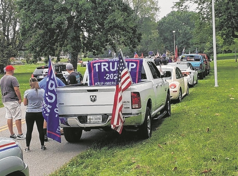 Cars line up at Mill Race Park on Saturday as part of a parade supporting President Donald Trump. Submitted photo
