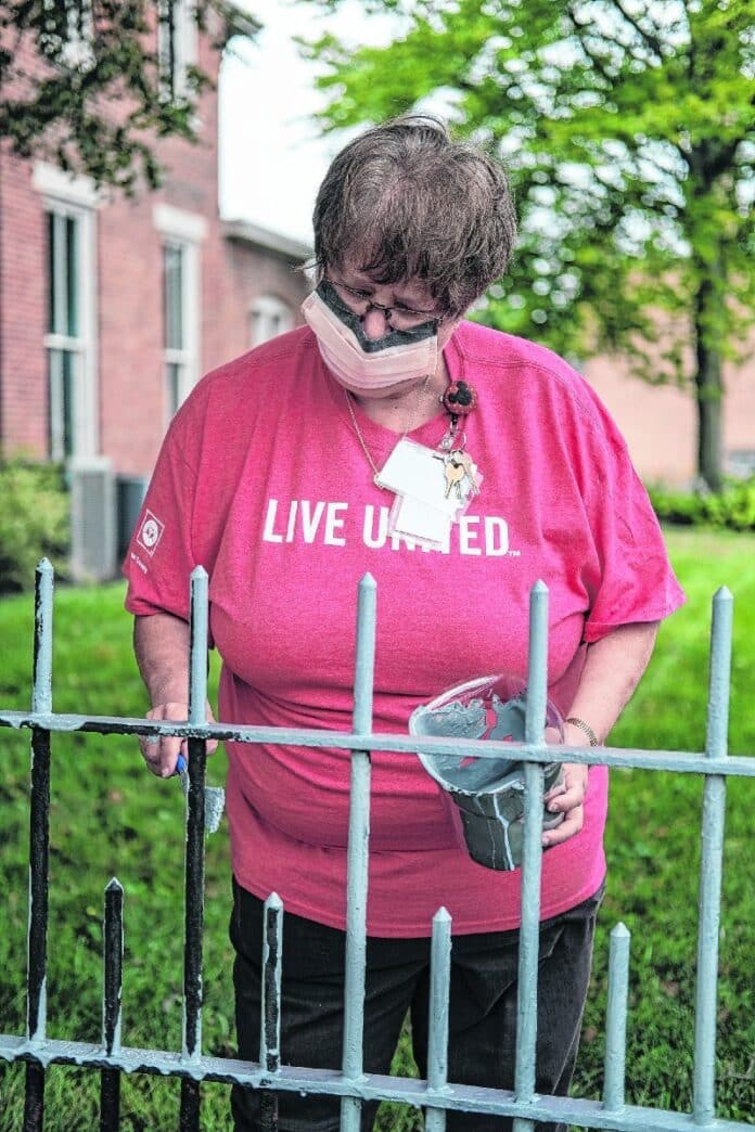 Six residents from Columbus Regional Hospital’s Surgical Services unit arrived Friday morning at the historic McEwen-Samuels-Marr House to work on a century-old fence.