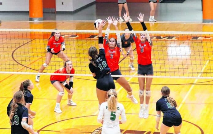 Whitehead finished with 19 kills, three aces and three blocks; Gabby Dean had 12 kills and five blocks; Katy Jordan tallied 36 assists and 20 digs; Saige Stahl finished with 13 digs and 10 kills; Cadence Gilley added 25 digs and two aces and Libby Dippold pounded 12 kills.