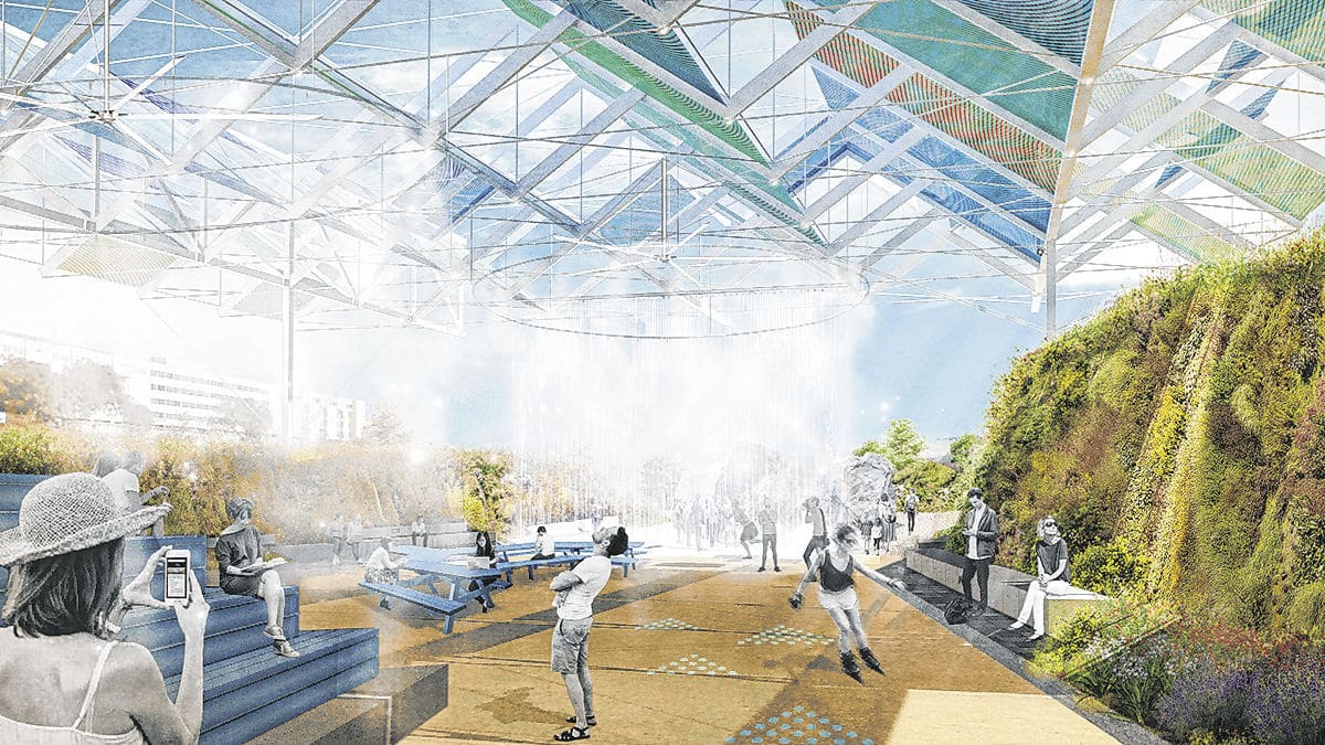 Plus, in photos, people are seen sitting underneath the air trees watching events — a significant development since the area previously was considered mostly unused. In other shots, cooling water sprays out the bottom of the air trees.