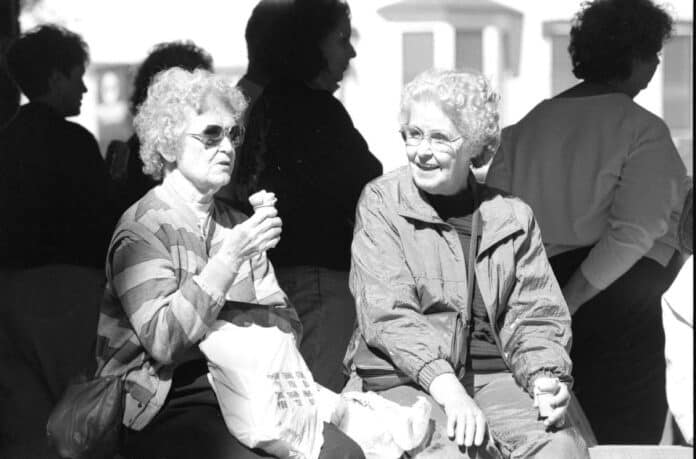 Mary Artis, left, and Marcille Roarks enjoyed the autumn sunshine and homemade ice cream while spending the afternoon visiting craft booths at Hope Heritage Days in 1995. From The Republic archives