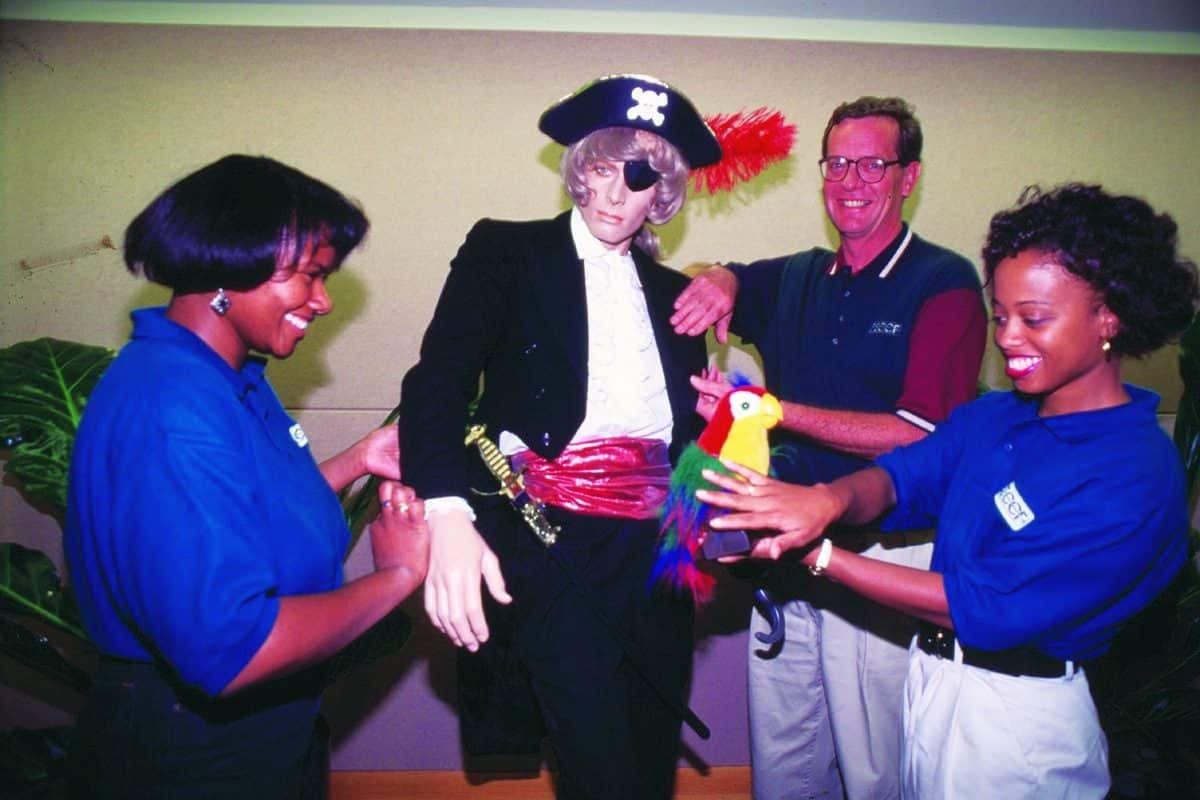 Pam Johnson, left, Tim Solso, president and chief operating officer, and Chauntelle Britt prepared George the Pledge Pirate for his debut in the Cummins Employees Combined Charities Fund pledge campaign in 1995. From The Republic archives