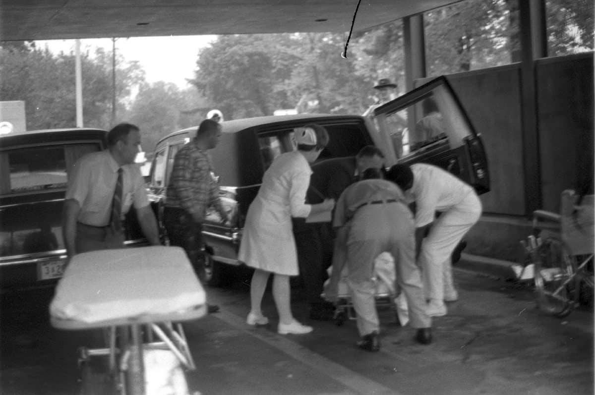 Policemen, firefighters and ambulance drivers converged on Donner Center where an explosion was simulated to test a new disaster and emergency procedures plan developed by Bartholomew County Hospital.