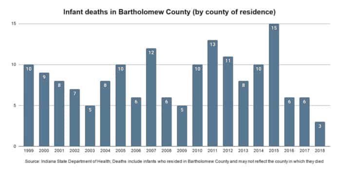 From Jan. 1 to Oct. 13, two infants died within the Bartholomew County limits, according to the Bartholomew County Health Department. By comparison, eight infants died within the county during all of last year.