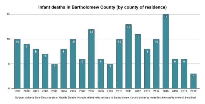 The Bartholomew County Health Department tracks deaths that occurred within the county and statistics may not reflect the infants’ county of residence.