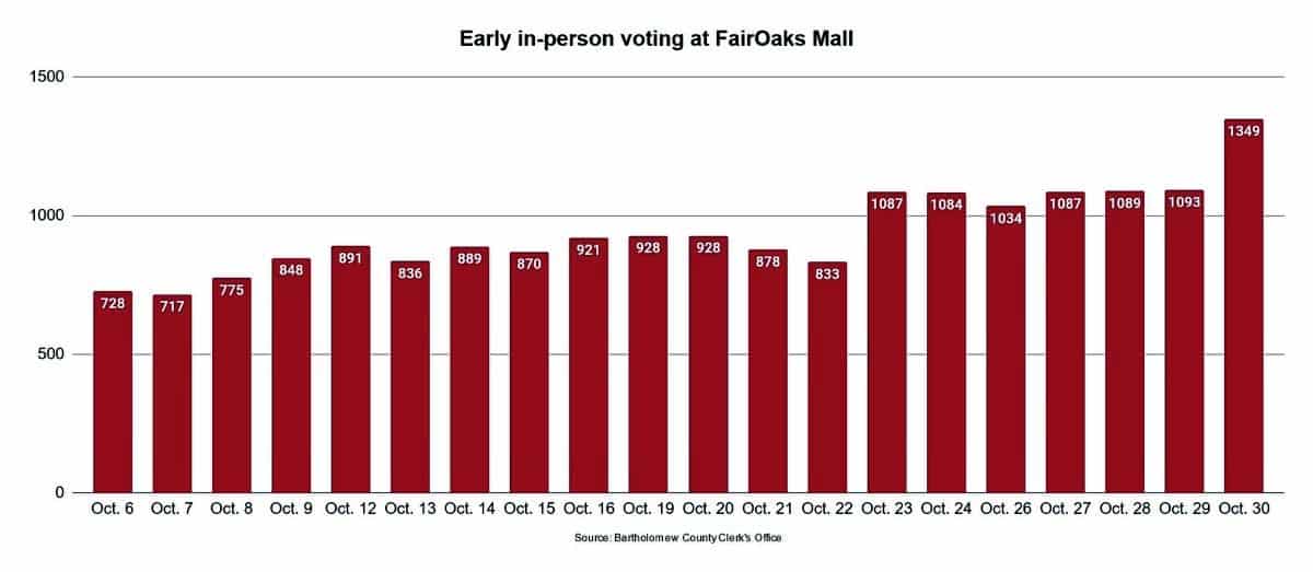 Bartholomew County voters only have two more chances to vote early in-person at the former Carson’s store, including Saturday from 8 a.m. to 5 p.m. and Monday from 8 a.m. to noon.