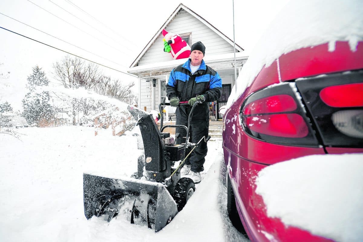 Santa Claus appears to be supervising as Rob Driver cleared his mother's driveway on South Beatty Street in 2010. From The Republic archives