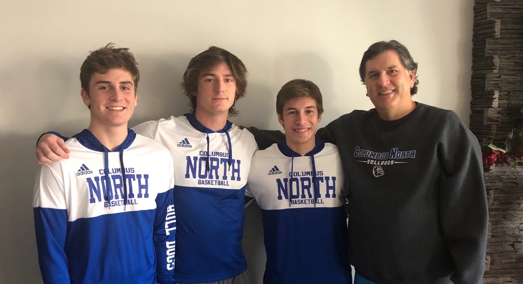These days, Harmon is back coaching — and he’s watching kids play at the same time. Mike is a varsity assistant at Columbus North, where his oldest son Reese is a senior point guard and junior Rhett and sophomore Luke play on the junior varsity.